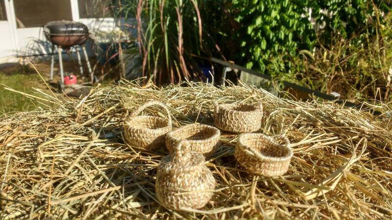 I’m right now collecting blackberry canes so when my wheat is harvested come fall I’ll be able to use them to make a bee skep and some coil baskets. The naturally soft and padded nature of woven baskets make them great for collecting and storing eggs in.